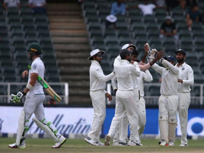 तत्पूर्वी दुसऱ्या दिवसाच्या खेळाला सुरुवात झाल्यावर भारताप्रमाणेच दक्षिण आफ्रिकेच्या फलंदाजांचीही घसरगुंडी उडाली. भुवनेश्वर कुमार, जसप्रीत बुमरा, इशांत शर्मा आणि मोहम्मद शमी या वेगवान चौकडीने भेदक मारा करून यजमान फलंदाजांना अडचणीत आणले. दरम्यान, डीन एल्गर 4 धावा काढून भुवनेश्वरची शिकार झाला. नाइट वॉचमन कागिसो रबाडाने मात्र भारताच्या गोलंदाजांना हैराण केले. अमलाने रबाडासोबत अर्धशतकी भागीदारी रचून दक्षिण आफ्रिकेला सावरले. मात्र रबाडाची (30) विकेट पडल्यानंतर एबी डीव्हिलियर्स (5) फाफ डू प्लेसिस (8) आणि क्विंटन डी काॅक (8) हे भरवशाचे फलंदाज झटपट बाद झाले.