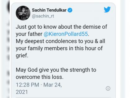 दिग्गज क्रिकेटपटू सचिन तेंडुलकरने ( Sachin Tendulkar) पोलार्डच्या वडिलांना श्रद्धांजली वाहिली आहे. ” तुझ्या वडिलांच्या निधनाची बातमी समजली आहे. या दु: खाच्या प्रसंगी मी शोक व्यक्त करतो. देव तुम्हाला या सामर्थ्य देईल”, असे सचिनने ट्विट केले.