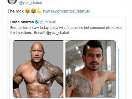 रोहित शर्माने आपल्या ट्विटरवर रोहितने चहल आणि रॉक यांचा एक फोटो पोस्ट केला आहे. या फोटोखाली रोहितने लिहिले आहे की, " मी आज एक सर्वात मस्त फोटो पाहिला. भारताने मालिका जिंकली असली तरी या फोटोने सर्वांनाच दखल घ्यायला लावली आहे."