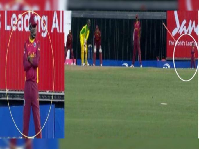 West Indies Vs Australia : वेस्ट इंडिज विरुद्ध ऑस्ट्रेलिया यांच्यातल्या दुसऱ्या वन डे सामन्यात विचित्र प्रकार पाहायला मिळाला. यजमान विंडीज संघाला 10 खेळाडूंसहच मैदानावर खेळावे लागले. ऑस्ट्रेलियाचा संघ फलंदाजी करत असताना विंडीज कर्णधार किरॉन पोलार्ड पंचांनी फ्री-हिट दिल्यानंतर थेट सीमारेषेबाहेर जाऊन उभा राहिला.