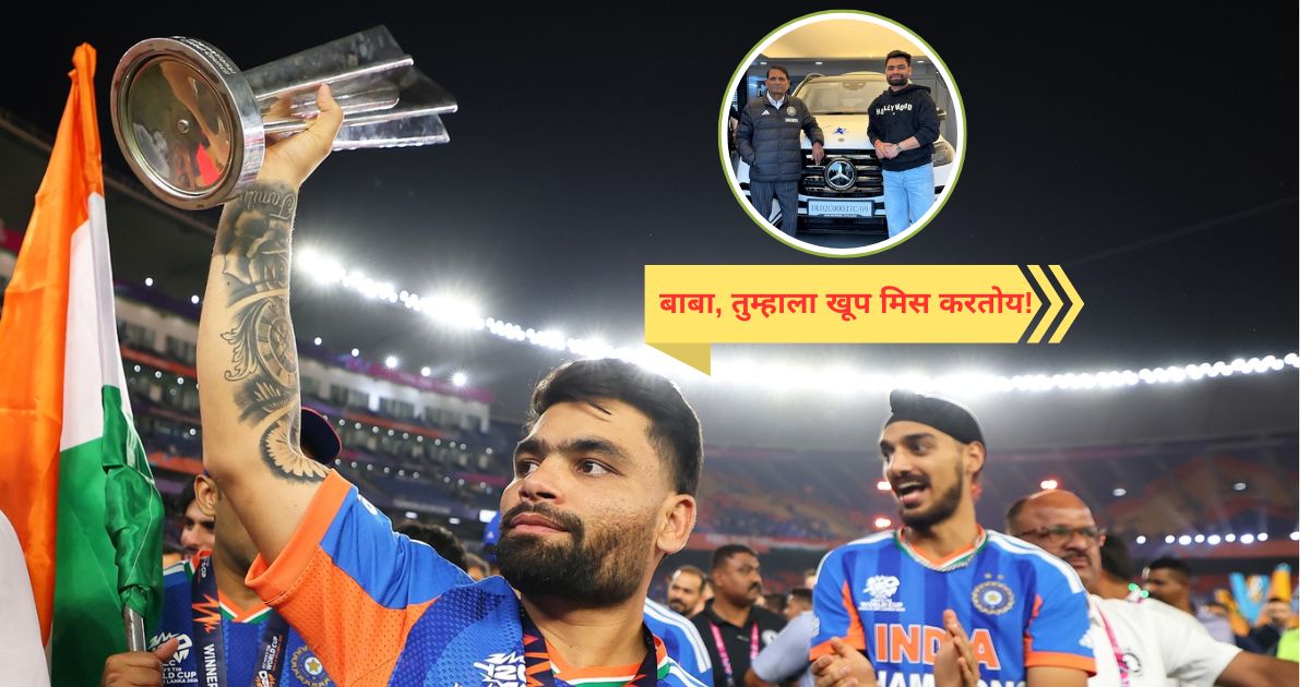 Rinku Singh's Emotional Note For Father After T20 World Cup Win : टीम इंडियाचा फिनिशर रिंकू सिंह याने (Rinku Singh) याने टी-20 वर्ल्ड कप जिंकल्यानंतर आपल्या दिवंगत वडिलांसाठी भावनिक पोस्ट शेअर केली आहे. रिंकू सिंह याचे वडील खानचंद्र सिंह यांचे २७ फेब्रुवारीला स्टेज-४ लिव्हर कॅन्सरने निधन झाले. दु:खाचा डोंगर कोसळल्यानंतरही रिंकू मैदानात उतरला अन् त्याने आपल्या बाबांचे स्वप्न साकार केले. बाबा या आनंदाच्या क्षणी तुम्ही माझ्यासोबत असायला हवे होते, अशा आशयाच्या शब्दांत रिंकूनं आपल्या मनातील भावना व्यक्त केल्या आहेत.