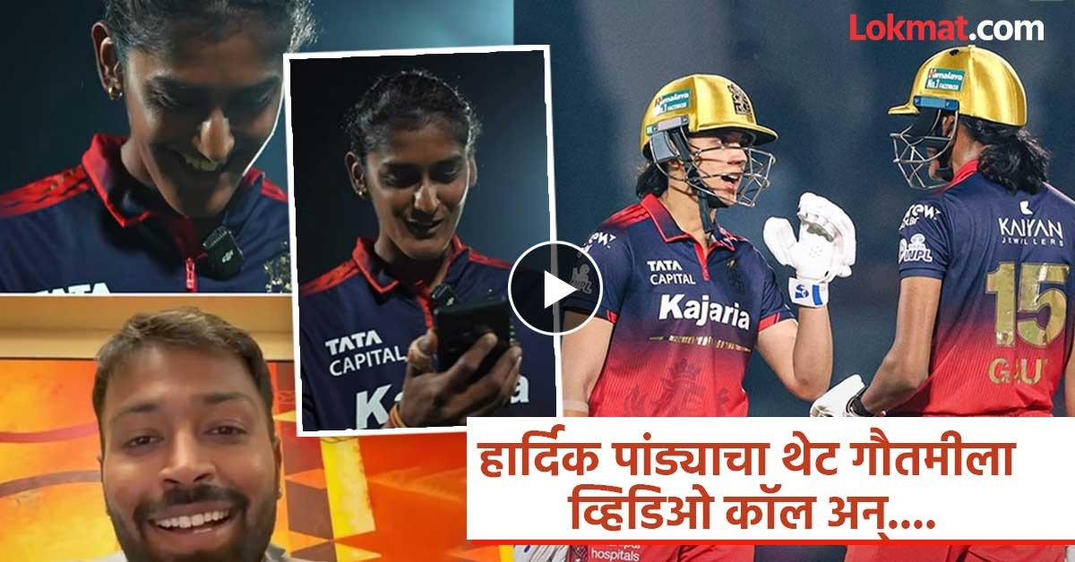 WPL 2026 Gautami Naik Gets Surprise Video Message From Hero Hardik Pandya : महिला प्रीमियर लीग (WPL 2026) च्या चौथ्या हंगामात स्मृती मानधनाच्या नेतृत्वाखालील आरसीबीच्या संघाने (RCB Women) सलग पाचव्या विजयासह अगदी दाबात प्लेऑफ्समध्ये एन्ट्री मारली. वडोदरा येथील कोटांबी स्टेडियमवर झालेल्या WPL 2026 मधील १२ व्या सामन्यात गुजरात जायंट्सने नाणेफेक जिंकून प्रथम गोलंदाजी करण्याचा निर्णय घेतला होता.