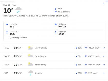 पाचव्या व सहाव्या दिवशी सामन्याच्या वेळेत पाऊस पडण्याची शक्यता फार कमी आहे. २२ जूनला ढगाळ वातावरण असण्याचा अंदाज आहे.