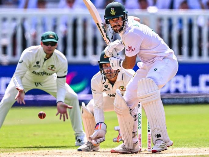 WTC Final 2025  South Africa vs Australia : लंडन येथील लॉर्ड्सच्या मैदानात सुरु असलेल्या वर्ल्ड टेस्ट चॅम्पियनशिपच्या फायनलमध्ये ऑस्ट्रेलियन संघाने दिलेल्या २८२ धावांचा पाठलाग करताना एडन मार्करमच्या दमदार खेळीच्या जोरावर दक्षिण आफ्रिकेच्या संघाने सामन्यावर मजबूत पकड मिळवलीये. रायन रिकल्टन अवघ्या ६ धावांवर तंबूत परतल्यावर एडन मार्करम याने वियान मुल्डरच्या साथीनं दुसऱ्या विकेटसाठी ६१ धावांची भागीदारी करत ऑस्ट्रेलियन गोलंदाजांचे खांदे पाडले. वियान मुल्डर ५० चेंडूत २७ धावा करून माघारी फिरला.