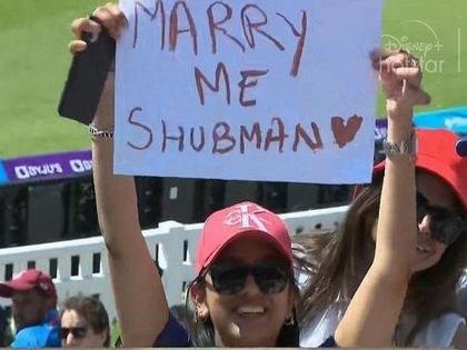 भारताचा सलामीवीर शुभमन गिल टेस्ट चॅम्पियनशिपच्या अंतिम सामन्यातील पहिल्या डावात अपयशी ठरला. तो केवळ १३ धावा काढून बाद झाला. आज ऑस्ट्रेलियाच्या दुसऱ्या डावाला सुरुवात झाली असताना त्याने लाबुशेनला धावचीत करण्याची एक चांगली संधी दवडली. त्याचदरम्यान, मैदानात एक गमतीशीर दृश्य दिसले. तिथे स्टेडियममध्ये सामना पाहत असलेल्या एका तरुणीने शुभमन गिलला लग्नाची मागणी घालणारा फलक झळकावला. त्यावर कॅमेरामनची नजर जाताच हा प्रसंग जगभरात पाहिला गेला. मात्र कॅमेरा शुभमन गिलकडे वळला असतात त्याने कुठलीही प्रतिक्रिया दिली नाही.