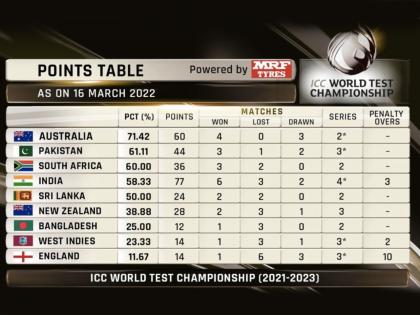ICC Test Championship points table : कसोटी क्रिकेटच्या इतिहासातील सर्वात रोमहर्षक सामन्यांमध्ये पाकिस्तान विरुद्ध ऑस्ट्रेलिया ( Pakistan vs Australia) यांच्यातल्या कराची येथे खेळवलेल्या दुसऱ्या कसोटीची नोंद झाली. ऑस्ट्रेलियाने ठेवलेल्या ५०७ धावांच्या अशक्यप्राय लक्ष्याचा पाठलाग करताना पाकिस्तानची सुरूवात खराब झाली होती. पण, कर्णधार बाबर आजम ( Babar Azam) १० तास खेळपट्टीवर संघर्ष करत राहिला. त्याच्या सोबतीला अब्दुल्लाह शाफिक व मोहम्मद रिझवान हेही शड्डू ठोकून उभे राहिले. पराभवाच्या छायेत असलेला पाकिस्तानचा संघ ही कसोटी जिंकेल अशी परिस्थिती निर्माण झाली होती, परंतु अखेरच्या क्षणाला त्यांनी सावध पवित्रा घेतला अन् सामना ड्रॉ राहिला.