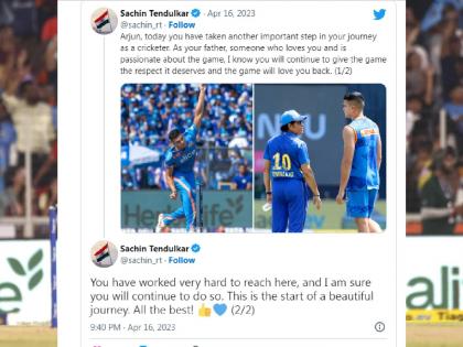 सायंकाळी सचिनने अर्जुनच्या पदार्पणावर एक भावनिक ट्विट केले. त्य़ाने लिहिले की,अर्जुन, आज तू क्रिकेटपटू म्हणून तुझ्या प्रवासात आणखी एक महत्त्वाचं पाऊल टाकलं आहेस. तुझा वडील या नात्याने, तुझ्यावर प्रेम करणारा आणि खेळाबद्दल उत्कट प्रेम करणारा मी आहे. मला माहित आहे की तुही खेळाचा योग्य तो आदर करत राहशील आणि हा खेळही तुला प्रेम देत राहिल. तू इथपर्यंत पोहोचण्यासाठी खूप मेहनत घेतली आहे आणि मला खात्री आहे की तू हे करत राहशील. एका सुंदर प्रवासाची ही सुरुवात आहे. ऑल द बेस्ट