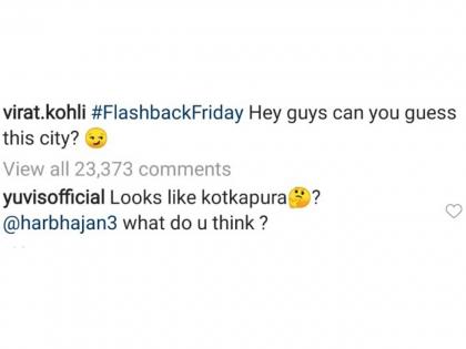 कोहलीनं फोटो पोस्ट करून आपण कोणत्या शहरात आहोत, असा प्रश्न विचरला. त्यावरून युवीनं कोहलीला ट्रोल केलं. हे कोटकापूरा तर नाही ना? हरभजन सिंग तुला काय वाटतं? असा प्रतीसवाल युवीनं केला. कोटकापूरा हे पंजाबमधील एक शहर आहे.