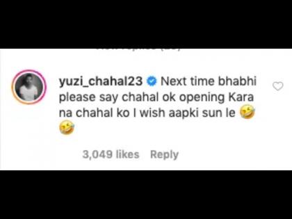 अनुष्काच्या या व्हिडीओखाली चहलनं विनंती केली की,''भाभी कृपया पुढच्या वेळेले चहलला ओपनिंगला पाठवा, चहलला ओपनिंगला पाठवा, असं म्हणा. तुमचं तो ऐकेल अशी अपेक्षा.''