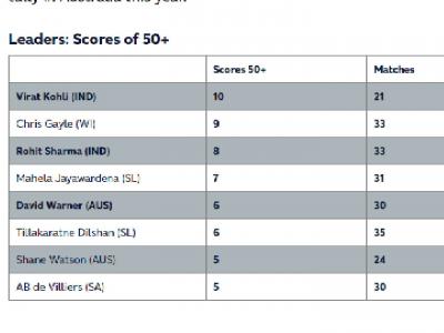ट्वेंटी-२० वर्ल्ड कप स्पर्धेत सर्वाधिक १०१६ ( ३१ सामने) धावांचा विक्रम श्रीलंकेच्या माहेला जयवर्धनेच्या नावावर आहे. ख्रिस गेल ९६५ ( ३३ सामने) व तिलकरत्न दिलशान ८९७ ( ३५) हे टॉप थ्री फलंदाज आहेत. पण, रोहित ८४७ धावांसह तिसऱ्या, विराट ८४५ धावांसह चौथ्या व वॉर्नर ७६२ धावांसह पाचव्या क्रमांकावर आहे. या तिघांना या क्रमवारीत आगेकूच करण्याची संधी आहे.