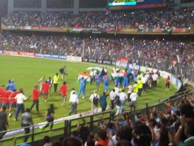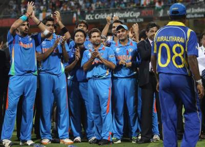 मुथय्या मुरलीधरनचा सामना करण्यासाठी कर्णधार धोनीनं स्वतःला पाचव्या क्रमांकावर फलंदाजीला प्रमोशन दिलं. धोनीचा हा डाव यशस्वी ठरला. धोनीनं ७९ चेंडूंत नाबाद ९१ धावा चोपल्या. नुवान कुलसेकरानं टाकलेल्या ४९व्या षटकाच्या दुसऱ्या चेंडूवर खणखणीत षटकार खेचला अन् एकच जल्लोष झाला.
