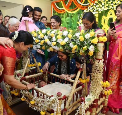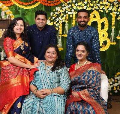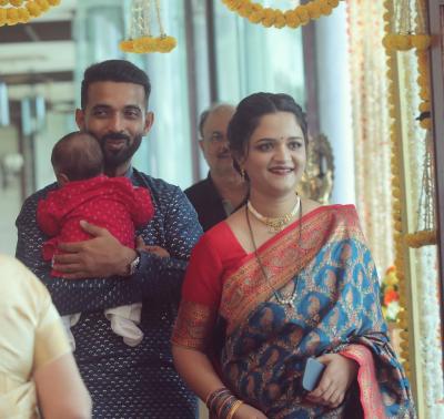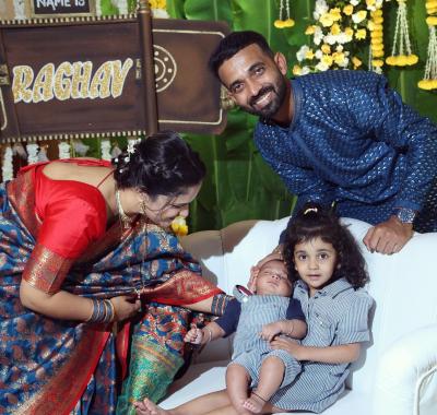 भारतीय संघाचा मराठमोळा खेळाडू अजिंक्य रहाणेच्या घरी काही महिन्यांपूर्वी एका चिमुकल्याचे आगमन झाले.अजिंक्यची पत्नी राधिका धोपावकरने ५ ऑक्टोबर रोजी मुलाला जन्म दिला. आता मुलाच्या बारशाचे फोटो नुकतेच राधिकाने सोशल मीडियावर पोस्ट केले आहेत. अगदी मराठमोळ्या अंदाजात बारशाचा सोहळा पार पडल्याचे फोटोंमधून दिसते.