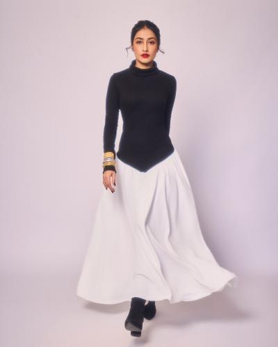 याशिवाय तिने पांढऱ्या रंगाचा लेहंगा घालून ब्लॅक अँड व्हाइट थीम साकारली आहे. तिच्या नव्या फोटोशूटवर चाहतेही विविध प्रकारच्या कमेंट्स करताना दिसत आहेत.