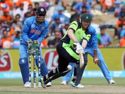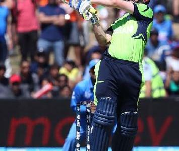 अजिंक्य रहाणे ३३ धावांवर नाबाद राहिला.विराट कोहली ४४ धावांवर नाबाद राहिला.उमेश यादव जॉर्ज डॉकरेलला बाद केल्यानंतर आनंद व्यक्त करताना.केविन ओब्रायनला बाद केल्यानंतर आनंद साजरा करताना टीम इंडिया.भारताचा जलदगती गोलंदाज मोहीत शर्मा. मोहितने ३८ धावा देत १ गडी बाद केला.रोहीत शर्मानेही ऑफ स्पिन गोलंदाजी केली.आयर्लंडच्या निआल ओब्रायनने ७५ धावा करत आयर्लंडला सन्मानजनक धावसंख्या उभारण्यात मोलाची भूमिका बजावली.मोहम्मद शामीने ४१ धावांमध्ये ३ गडी बाद करत आयर्लंडच्या फलंदाजांना वेसण घातली.आयर्लंडचा विल्यम पोर्टरफिल्ड एक फटका लगावताना. सलामीचा फलंदाज असलेल्या पोर्टरफिल्डने ६७ धावा करत संघाला चांगली सुरूवात करून दिली.सलामीला आलेल्या रोहीत शर्माने ६४ धावा करत शिखर धवनला मोलाची साथ दिली.भारताने आयर्लंडचा ८ गडी राखून साखळी सामन्यात पराभव केला. या विजयाचा शिल्पकार होता शतक झळकावणारा शिखर धवन. आयर्लंडला २५९ धावांवर रोखल्यानंतर भारताने या धावा २ गडी गमावत अवघ्या ३६.५ षटकांमध्ये केल्या.