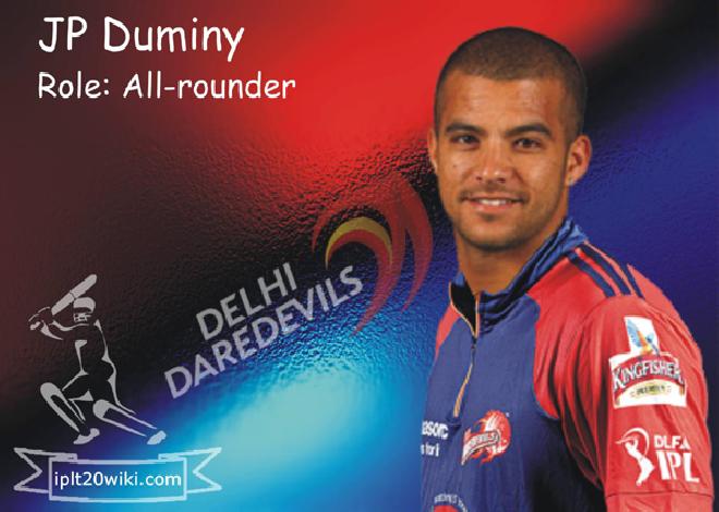 दक्षिण आफ्रिका संघाचा डावखुरा फलंदाज जेपी ड्यूमिनी दिल्ली डेअरडेव्हिल्स संघाचे नेत्तृत्व करताना पाहायला मिळेल. जेपी याआधी मुंबई इंडियन्स डेक्कन चार्जस संघाकडून खेळताना दिसला आहे. जेपीन आत्तापर्यंत ५३ सामने खेळले असून त्याच्या नावावर ४१० धावा व ३ विकेट आहेत.