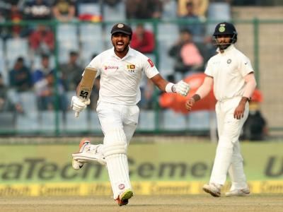 शतक पूर्ण झाल्यानंतर दिनेश चंडिमलने असा जल्लोष केला.
