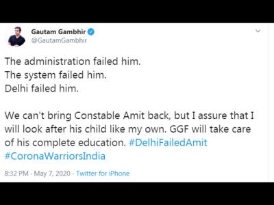 गंभीरनं अमित यांच्या निधनानंतर केवळ श्रद्धांजली वाहिली नाही. तर त्यानं अमित यांच्या मुलांच्या शिक्षणाचा सर्व खर्च उचलणार असल्याचा निर्णय घेतला. त्यानं लिहिलं की,''प्रशासन, यंत्रणा आणि दिल्ली अपयशी ठरली. कॉन्स्टेबल अमित यांना आपण परत आणू शकत नाही, परंतु मी एक खात्री देतो की त्यांच्या मुलांची मी काळजी घेईन, अगदी माझ्या मुलांसारखी. गौतम गंभीर फाऊंडेशन त्यांच्या मुलांच्या शिक्षणाची जबाबदारी उचलत आहे.''