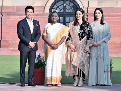Cricket Legend Sachin Tendulkar Meets President Draupadi Murmu At Rashtrapati Bhavan With Wife Anjali Teandulkar And Daughter Sara Tendulkar Know Reason With Special Pics