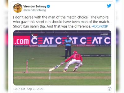 DC vs KXIP Latest News : Umpire controversially signals a short-run in 19th over against DC, Virender sehwag and Irfan Pathan criticize