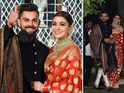 पार्टीत अनुष्का शर्माची साडी सर्वांचं लक्ष वेधून घेत होती. अनुष्काची ही साडी वाराणसीच्या पीलीकोठीच्या कारागीरांनी बनवली. तर विराटने काळ्या रंगाची शेरवानी घेतली होती.