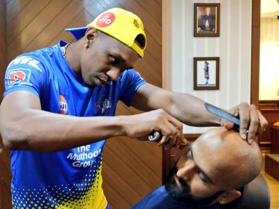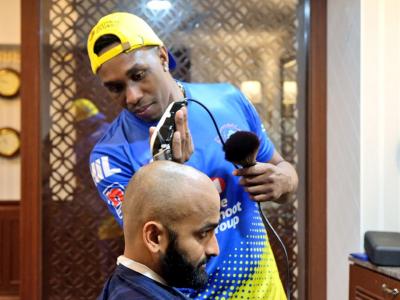 ब्राव्हो सहकारी खेळाडूंचे मनोबल वाढवण्याचे प्रयत्न करत आहे. त्यासाठी तो चक्क न्हावीच्या भूमिकेत गेला आहे. सामन्यापूर्वी त्याने मोनू सिंगच्या दाढीला नवा लुक दिला.