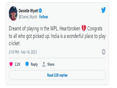 England star Dani Wyatt, who proposed to Virat Kohli after going unsold in the Women's Premier League auction, says her dream of playing in the WPL has been dashed