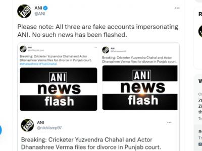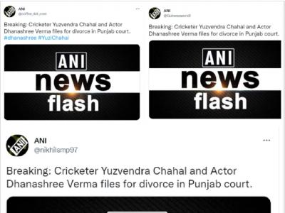 Fact Check : Is Cricketer Yuzvendra Chahal and Actor Dhanashree Verma files for divorce in punjab Court? All three are fake accounts impersonating ANI,No such news has been flashed.