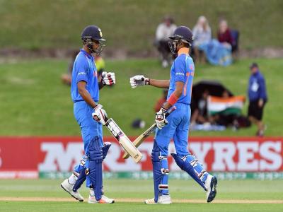 पृथ्वी शॉ आणि शुभमन गिल बाद झाल्यानंतर हार्विक देसाई आणि मनजोत कालराने आणखी पडझड होऊ न देता विजयावर शिक्कामोर्तब केले.