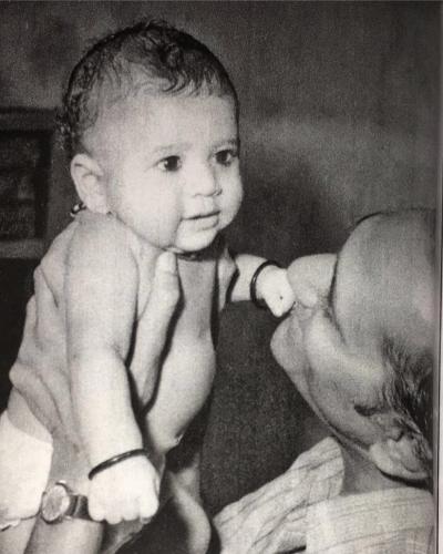 वडिल रमेश तेंडुलकरसोबत लहान सचिन.