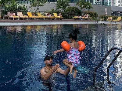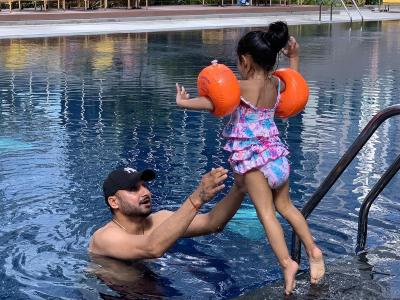 भारतीय संघाचा फिरकीपटू हरभजन सिंग पत्नी गीता बसरा आणि कन्या हिनाया यांच्यासह दुबईत पर्यटनाला गेला आहे.