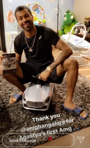 पण, आता हार्दिकनं या वृत्ताला दुजोरा दिला आहे. त्याच्या मुलाला कुणीतरी गिफ्ट पाठवलं आणि त्याचे आभार मानणारा फोटो हार्दिकनं इस्टा स्टोरीमध्ये ठेवला.त्यात त्यानं मुलाचं नाव अगस्त्या असल्याच्या वृत्ताला दुजोरा दिला.