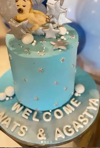 केकवर नॅट्स ( नताशा) आणि अगस्त्या ( Agastya) असे लिहिले आहे. त्यावरून ज्युनियर पांड्याचं नाव अगस्त्या असे असेल असा अंदाज बांधला जात आहे.