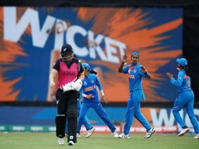 लक्ष्याचा पाठलाग करताना न्यूझीलंडला 34 धावांत 3 धक्के बसले. शिखा पांडे, दीप्ती शर्मा आणि पूनम यादव यांनी पहिल्या दहा षटकांत किवींना हे धक्के दिले. कॅटी मार्टीन आणि मॅडी ग्रीन यांनी चौथ्या विकेटसाठी 43 धावांची भागीदारी करताना न्यूझीलंडचा डाव सावरला. पण, राजेश्वरी गायकवाडने ही जोडी तोडली. तिनं ग्रीनला ( 24) बाद केले.