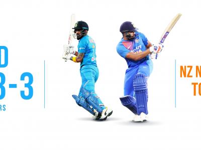 भारताच्या १६४ धावांच्या आव्हानाचा पाठलाग करताना न्यूझीलंडला चांगली सुरुवात करता आली नाही. कारण न्यूझीलंड आपले पहिले तीन फलंदाज फक्त १७ धावांत गमावले.