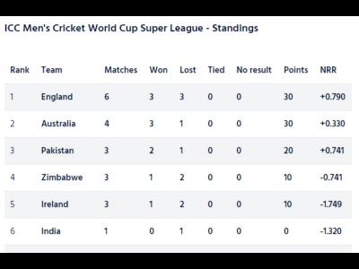 World Cup Super Leagueमध्ये इंग्लंडनं सहापैकी तीन सामने गमावूनही अव्वल स्थान कायम राखले आहे. इंग्लंडचा नेट रनरेट हा +०.७९० आहे आणि त्यामुळे समान गुण असूनही ऑस्ट्रेलिया ( +०.३३०) दुसऱ्या क्रमांकावर आहे.