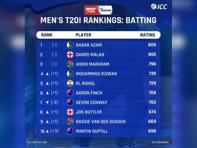 आयसीसीच्या ट्वेन्टी-२० क्रमवारीत फलंदाजांच्या यादीत केवळ एकाच भारतीला टॉप-१० मध्ये आपलं स्थान टिकवता आलेलं आहे. तो म्हणजे केएल राहुल. आयसीसीच्या क्रमवारीत केएल राहुल पाचव्या क्रमांकावर आहे.