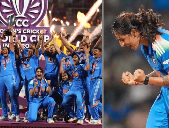 भारतीय महिला संघाने पहिल्यांदाच क्रिकेट विश्वचषक जिंकला असून त्यामुळे देशभरात क्रिकेट चाहत्यांमध्ये उत्साहाचं वातावरण आहे. मुंबईतील डीवाय पाटील स्टेडियमवर झालेल्या फायनल सामन्यात टीम इंडियाने दक्षिण आफ्रिकेचा पराभव केला.