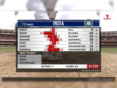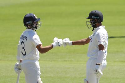 स्टार्कनं टाकलेला चेंडू अजिंक्यच्या बॅटला एज लागून गल्लीच्या दिशेनं गेला, सुदैवानं तेथे फिल्डर नसल्यानं त्याला चौकार मिळाले. पण, ५५व्या षटकाच्या अखेरच्या चेंडूवर त्याला नशिबाची साथ मिळाली नाही. मॅथ्यू वेडनं कॅच घेत अजिंक्यला माघारी जाण्यास भाग पाडले. अजिंक्य ९३ चेंडूंत ३ चौकारांच्या मदतीनं ३७ धावांवर माघारी परतला. लंच ब्रेकनंतरच्या पहिल्याच षटकात मयांक ( ३८) जोश हेझलवूडनं माघारी पाठवलं. स्टीव्ह स्मिथनं स्लीपमध्ये सुरेख झेल टिपला.
