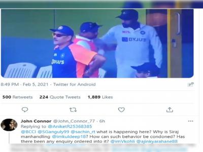 ऑस्ट्रेलिया दौऱ्यावर सर्वाधिक १३ विकेट्स घेणारा सिराज चेन्नई कसोटीत प्लेईंग इलेव्हनमध्ये नाही, कुलदीप यादवलाही बाकावरच बसवले आहे. या दोघांच्या जागी संघात अनुक्रमे इशांत शर्मा व शाहबाज नदीम यांना संधी मिळाली आहे. हा व्हिडीओ ड्रेसिंग रुमच्या बाहेरचा आहे. आता बीसीसीआय या प्रकरणाचा तपास करून काय कारवाई करतात, याकडे सर्वांचे लक्ष लागले आहे.