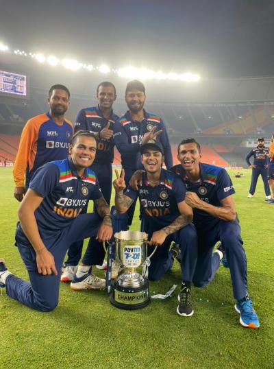 IND vs ENG 5th T20 : Virat Kohli handed over the series trophy to Suryakumar Yadav and Ishan Kishan, two debutants light up the series for India