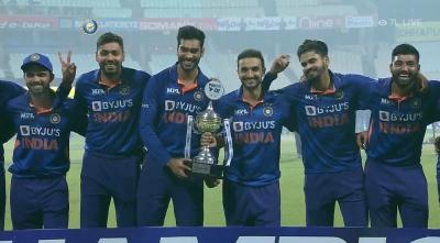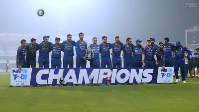 India vs New Zealand, 3rd T20I Live Update : राहुल द्रविड याच्या मुख्य प्रशिक्षकपदाच्या व रोहित शर्माच्या फुल टाईम नेतृत्वाखालील पहिल्या ट्वेंटी-२० मालिकेत टीम इंडियानं दणदणीत विजय मिळवला. रोहितनं या विजयानंतर महेंद्रसिंग धोनी, विराट कोहली यांची परंपरा कायम राखली. चला जाणून घेऊया त्यानं विजयी चषकासोबत केलं तरी काय...