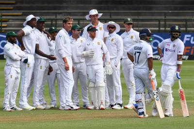 दिवसाच्या पहिल्याच षटकात मार्को येनसन यानं दुसऱ्याच चेंडूवर पुजाराला बाद केले, किगन पीटरसननं अफलातून झेल टिपला. त्यानंतर आलेल्या रहाणेला कागिसो रबाडानं भन्नाट चेंडू टाकून माघारी जाण्यास भाग पाडले. रहाणे बॅट मागे घेणार त्याआधीच चेंडू ग्लोव्ह्जला घासून यष्टिरक्षकाच्या दिशेनं गेला, परंतु त्याच्या हातून झेल सुटला होता. मात्र, स्लिपमध्ये उभ्या असलेल्या डीन एल्गनरनं संधी दवडली नाही.