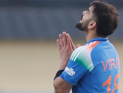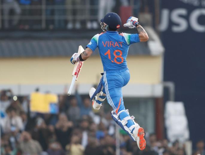 शतकी खेळीनंतर विराट कोहलीनं खास अंदाजात केलेले सेलिब्रेशनही चर्चेचा विषय ठरला. तो सेलिब्रेशनमध्ये व्यग्र असताना एक चाहता थेट मैदानात घुसून त्याच्या पाया पडल्याचेही पाहायला मिळाले.
