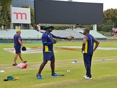दक्षिण आफ्रिकेचे फलंदाज सराव सत्रादरम्यान चर्चा करताना.