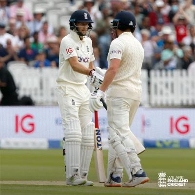 इंग्लंडचा कर्णधार जो रूट याचे लॉर्ड्सवर शतक, कसोटी क्रिकेटमधील २२ वे, तर २०२१मधील पाचवे शतक ठरले. यासह त्यानं आंतरराष्ट्रीय क्रिकेटमध्ये १६ हजार धावांचा पल्ला पार केला. कसोटी क्रिकेटमध्ये ९००० धावा करणारा तो इंग्लंडचा दुसरा फलंदाज ठरला. यापूर्वी अॅलिस्टर कूकनं हा पराक्रम केला आहे.