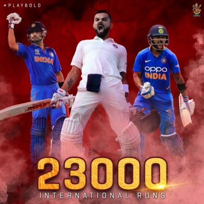 आंतरराष्ट्रीय क्रिकेटमध्ये २३ हजार+ धावा करणारा तो जगातला सातवा फलंदाज आहे. सचिन, पाँटंग, कॅलिस, राहुल द्रविड, कुमार संगकारा व माहेला जयवर्षनं यांनी हा पराक्रम केला आहे. सचिनच्या नावावर ३४, ३५७, द्रविडच्या नावावर २४,२०८ धावा आहेत आणि त्यानंतर विराटचा क्रमांक येतो.