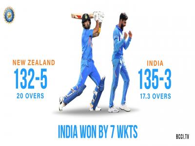 भारत विरुद्ध न्यूझीलंड यांच्यातल्या दुसऱ्या ट्वेंटी-20 सामन्यात टीम इंडियानं सुरेख सांघिक खेळ केला. गोलंदाजांच्या उल्लेखनीय कामगिरीनंतर लोकेश राहुल आणि श्रेयस अय्यर यांच्या फटकेबाजीच्या जोरावर टीम इंडियानं सात विकेट राखून हा सामना जिंकला.