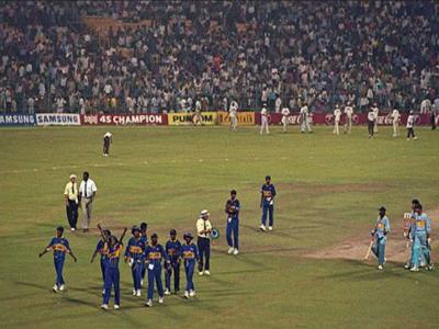 1996 च्या विश्वचषकात यजमानपद भूषवताना भारतीय संघ पुन्हा एकदा उपांत्य फेरीत पोहोचला. मात्र सहयजमान असलेल्या श्रीलंकेविरुद्धच्या उपांत्य लढतीत आव्हानाचा पाठलाग करताना भारताची अवस्था 8 बाद 120 अशी केविलावणी झाली होती. त्यावेळी क्रिकेटप्रेमींनी दंगा सुरू केल्याने पंचांनी श्रीलंकेला विजयी घोषित केले होते.