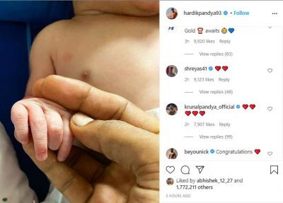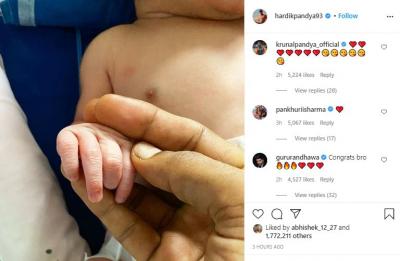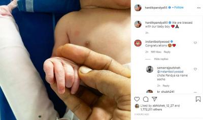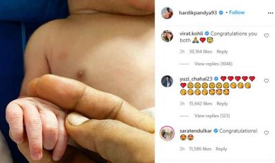 हार्दिक पंड्याला मुलगा झाल्याचे समजल्यानतंर टीम इंडियाचा कर्णधार विराट कोहलीनेही हार्दिक पंड्या आणि नताशाला शुभेच्छा दिल्या आहेत. 'आपल्या दोघांनाही शुभेच्छा,' असे विराट कोहलीने इंस्टाग्रामवर लिहिले आहे. एवढेच नाही, तर तेंडुलकरची मुलगी सारा तेंडुलकरनेही त्याला शुभेच्छा दिल्या आहेत.