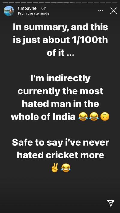 लंडनच्या टीम पेन ( Tim Payne) व्यक्तीला टॅग करून भारतीय चाहत्यांनी ट्रोल सुरू केले. या व्यक्तिनं ६०० हून अधिक मॅसेज आल्याचा स्क्रीन शॉट शेअऱ करून त्याचं दुखणं सर्वांसमोर मांडलं.
